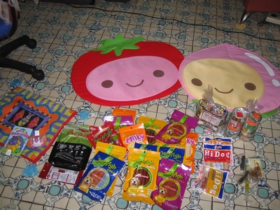 買了一個貓草墊~三個貓草玩具(我們家的小芙貓,興奮的要死~下次再把影片傳上來~)